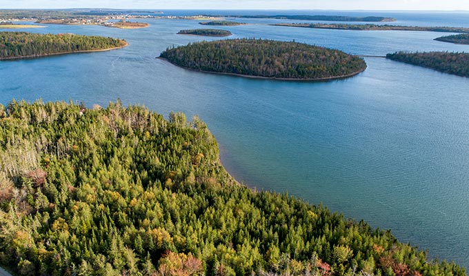 Die South Cove Estates Grundstücke liegen im Süden von Cape Breton, bei Isle Madame. Die letzten 3 KM zu den Grundstücken sind sehr eindrucksvoll, da man unentwegt Einblicke auf das Wasser erhält. Zudem liegen diese schönen Grundstücke in einem Gebiet mit vielen Inseln und Halbinseln, sodass die weiten Wasserflächen immer wieder durch Landflächen unterbrochen werden. Die Luftaufnahmen zeigen schon fast karibische Farben durch die großen Sandflächen im Wasser.
